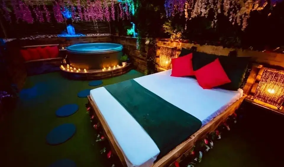 Tucked away in the heart of Sherwood Castle Retreat, this beautifully themed lodge offers a truly magical escape. With its tropical lighting, enclosed garden, and private hot tub, the Enchanted Lodge is perfect for couples, friends, or families looking to relax in comfort — where every dog is welcomed like family.